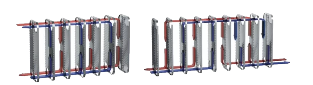 Plitəli istilik dəyişdiriciləri soyuducu axınının sxeminə görə təsnif edilir. PTO-nun iki əsas növü var: tək keçidli və cüt keçidli. Üç dövrəli, dörd dövrəli və beş dövrəli növləri də var.